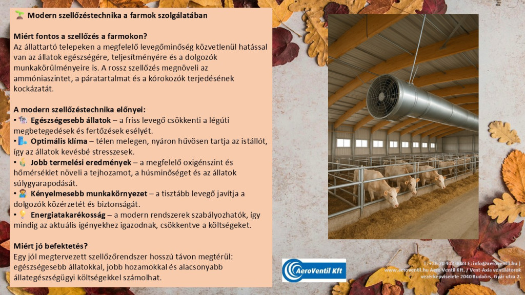 A jól megtervezett szellőzőrendszer kulcsfontosságú az állattartó telepeken az egészséges állomány megőrzéséhez és a termelékenység maximalizálásához.