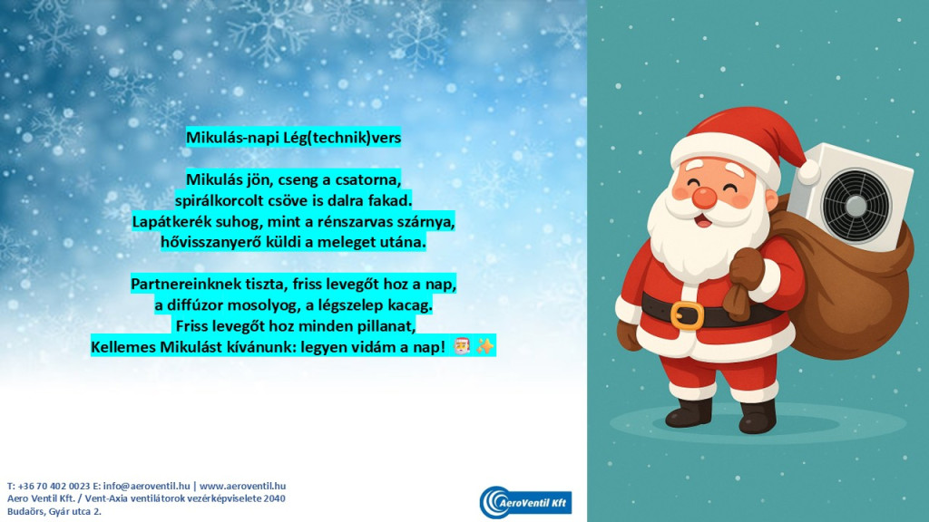Fedezd fel a Mikulás-hangulatú versünket, amely játékos formában mutatja be, milyen fontos a modern légtechnika a téli ünnepek kényelméhez.